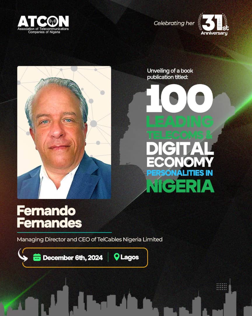 TelCables Nigeria CEO, Fernando Fernandes, Recognised as One of ATCON’s 100 Leading Telecoms Personalities